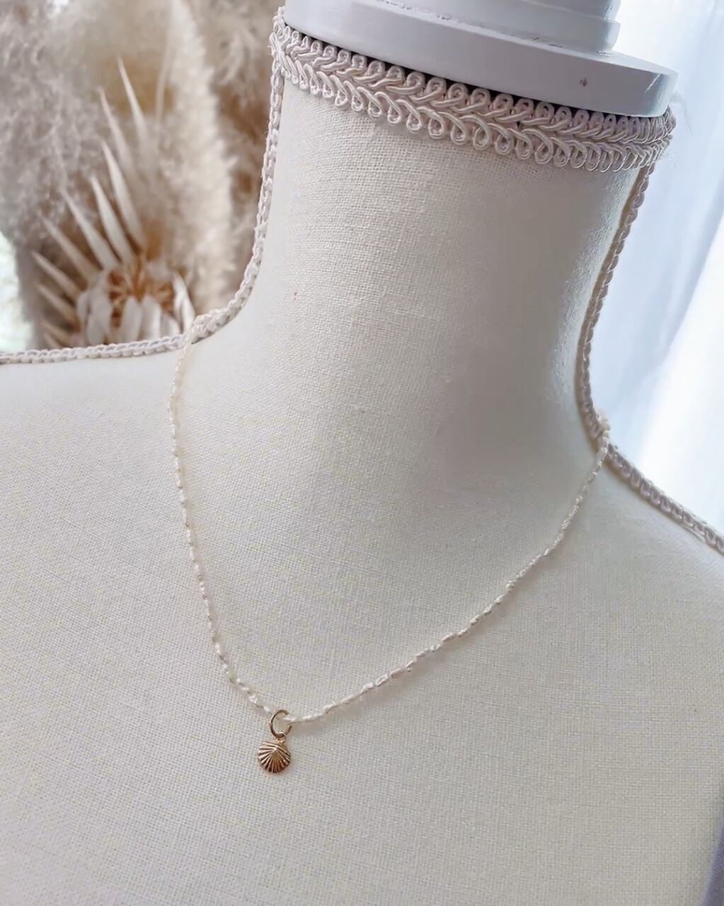 極小淡水パールを使用する事で普段使いな華奢なネックレスになりました♡